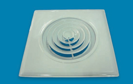 - 特性:擴散外框均為一體沖壓成型,無焊接點。配合裝潢,表面為格柵葉片,可調整吹出角度,使風量均勻分佈,方便與軟管連接。